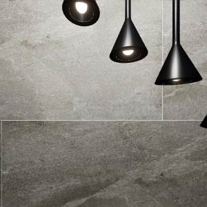 Toilet met vloer vanuit de woonkamer en accentwand doorgezet